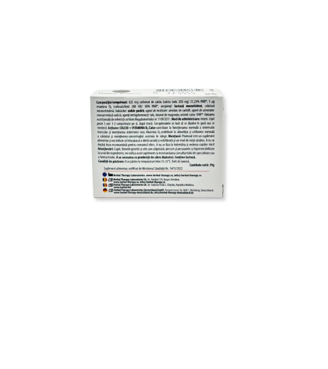 Compoziție /comprimat: 625 mg Carbonat de calciu (calciu ionic 20mg) 31,25% VNR*;